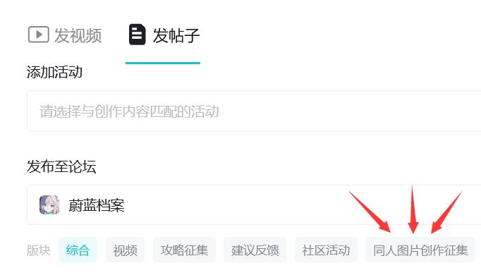 参与活动发帖时注意选择子版块“同人图片创作征集”喔!