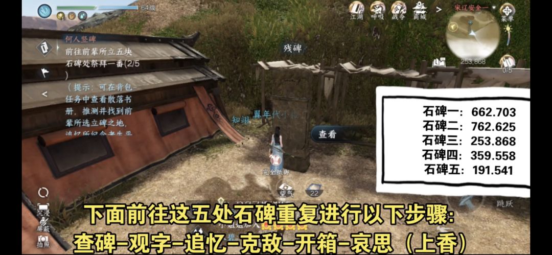 4. 分别前往以下三个地点先立碑,再查看石碑后哀思