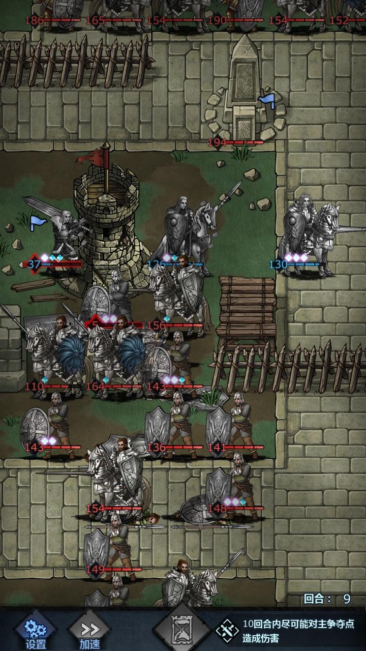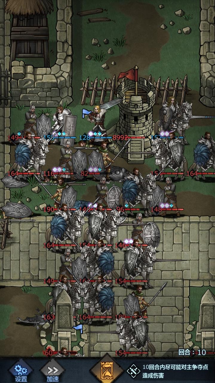如果换成两大剑,一援护王禁,一远程援护皇骑,也可以学援护再转成重步兵,重骑可以不要,但必须要有远程援护保护拆塔的大剑,长弓不要,一个奶,在必要的时候给大剑加血,重骑一下捅不死大剑,这种阵容至少8回合就能拆完,但我只有一个大剑,所以拆塔有点慢