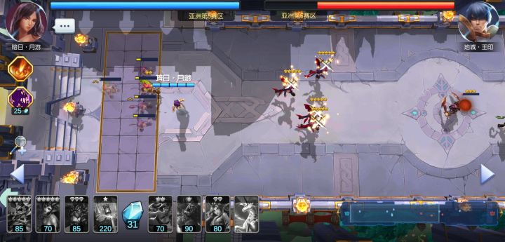 布局完之后,弓箭手优先二费,其他宠姬跟着二费。弓箭手三费之后,不断安排二费宠姬,有多少就拍安排多少,注意控制出兵时间,必须同时出兵。