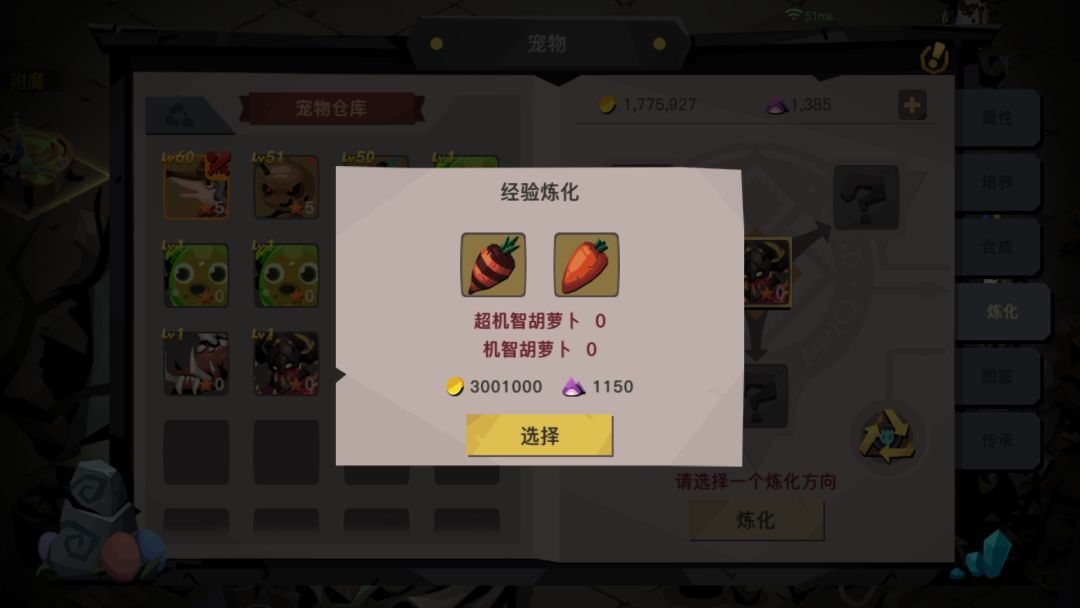 喂重生果实洗技能的同时,有几率出现变异,一个变异宠炼化后几百万金币不等。缺金币又不需要重生果实的玩家可以拿来赌金币,赌🐶你懂的。能不能换到金币就看玩家运气了。