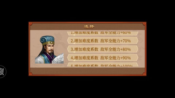 需要注意的是这个难度是建立在周目的基础上的,周目越高,敌军属性也越高,周目主将小兵的技能也都会带进挑战,所以玩家要量力而行,5个小难度下无论过关哪个,都能达成成就激战黄巾,获得敏捷果*3,老样子,剧情关再打10关,即解锁高阶难度,此难度也细分为5个难度,敌军属性加成60%-100%,
