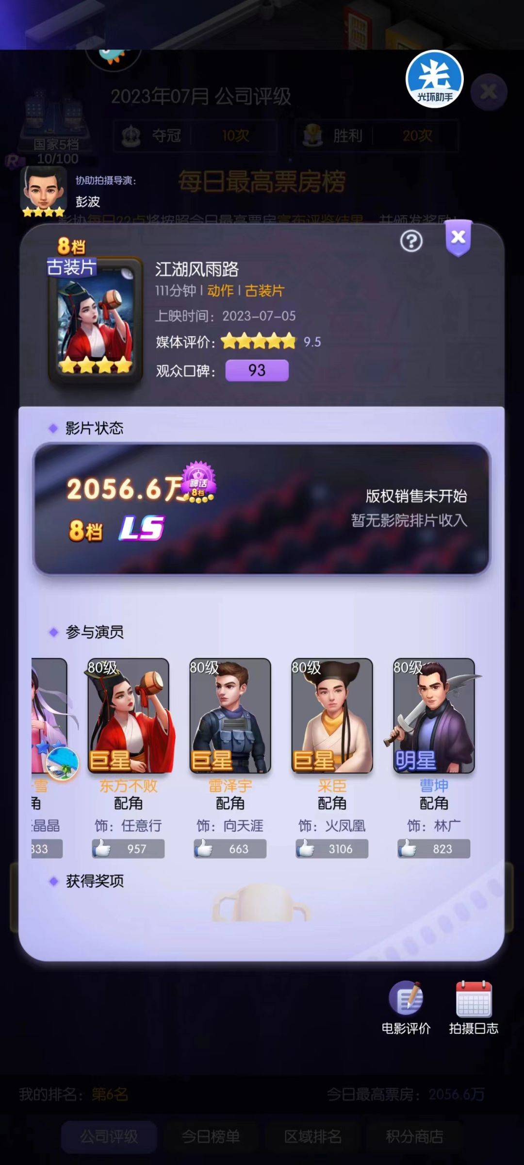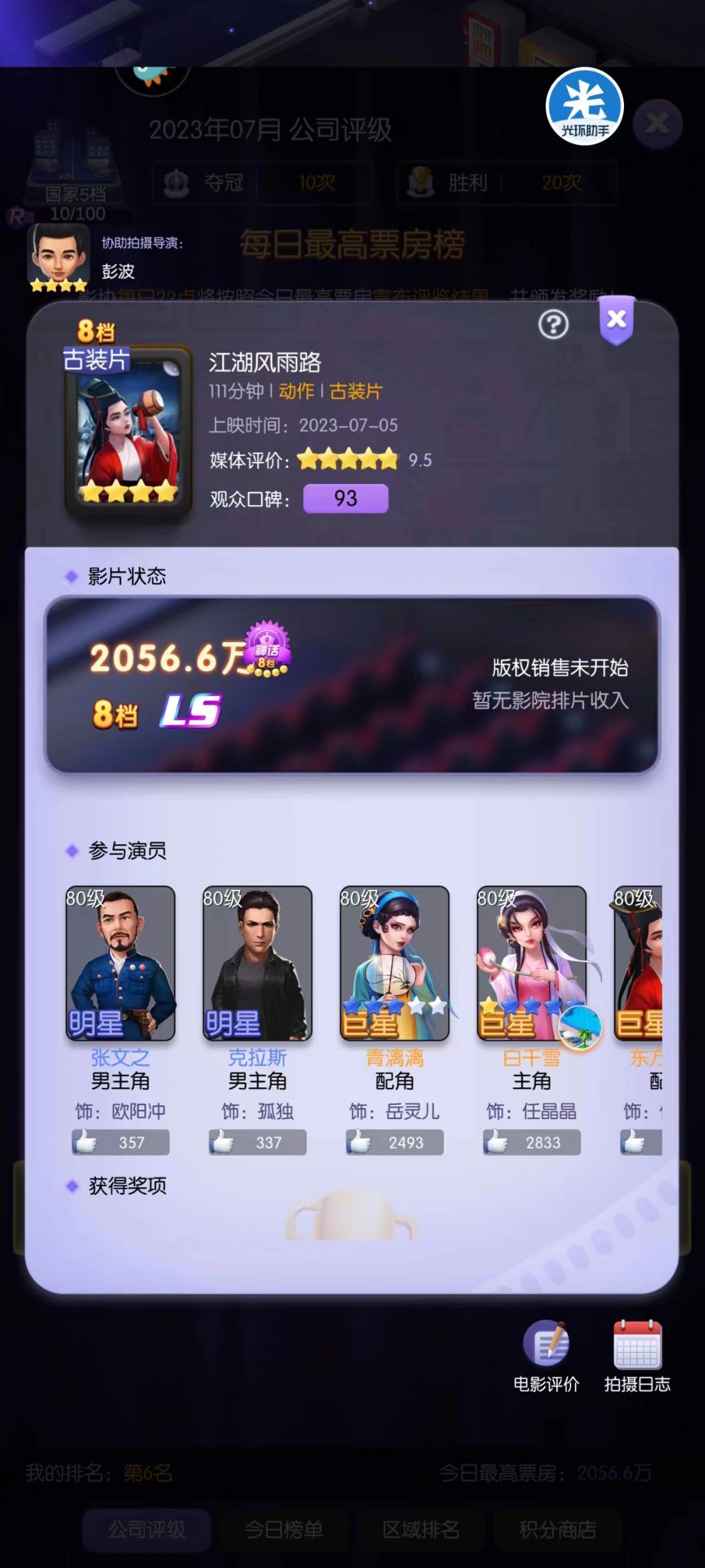 说明:选的明星都是拍摄动作片时能拉人的,大军也是稳定提供技能2技能3的增益,剩下则是全让古装巨星来打场面属性这块