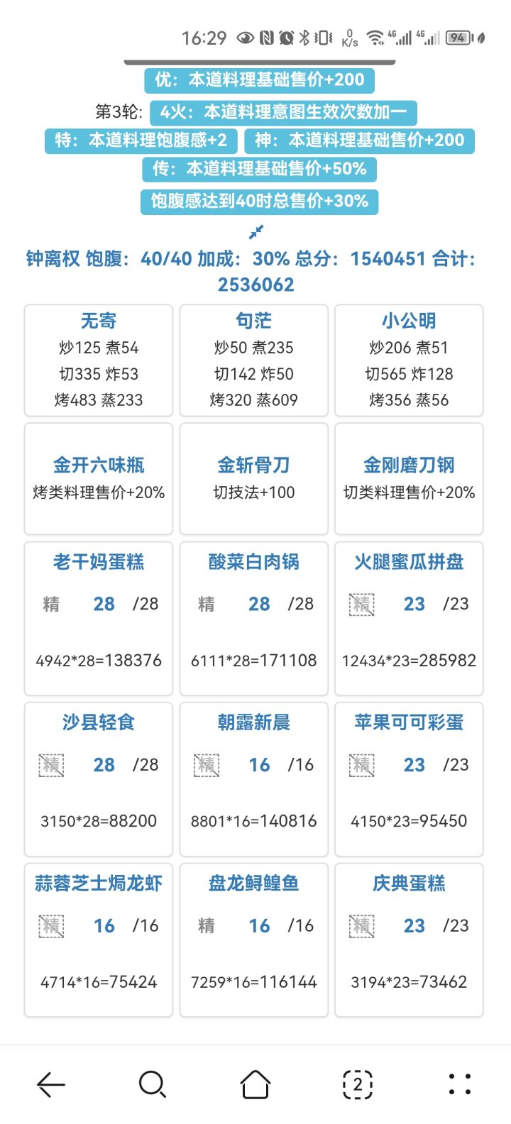 零氪两年宴会四档卡线作业(尤伶,句茫没修)仅使用中级池厨具