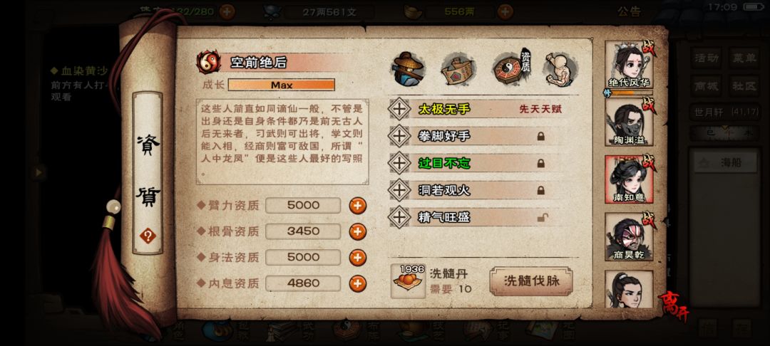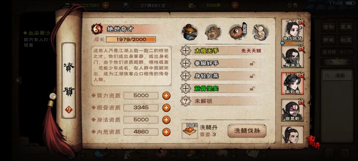 首先开了三孔,代表你每点击一次“洗髓伐脉”就刷了三条脉,因此我们要通过计算按了多少次,来计算我们需要多少丹。