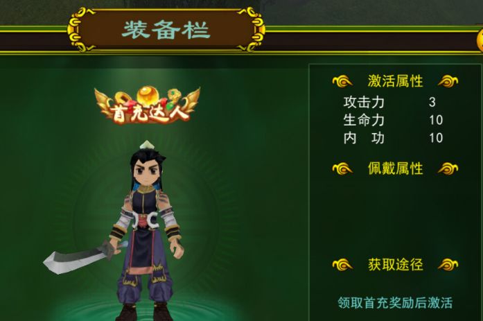 这里建议从6R首充开始,因为会有个绝版的“首充达人”的称号,只能从此获取,先买侠名领取的首充奖励是获取不到首充称号的。
