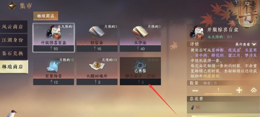 优先购买内攻宝箱>天外陨铁>解玉砂>技能残页>静息凝丹>寻侠帖