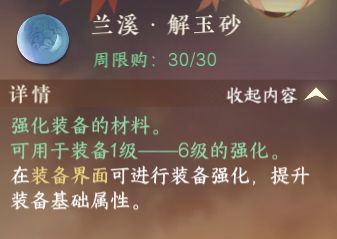 第三个解玉砂:强化装备的材料,过段时间会比较缺