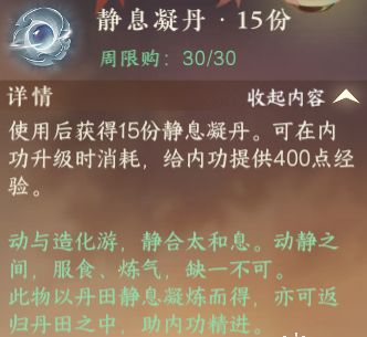 第五个静息凝丹:这个几木建议能攒就攒点不然过两天升级内攻会让你绝望