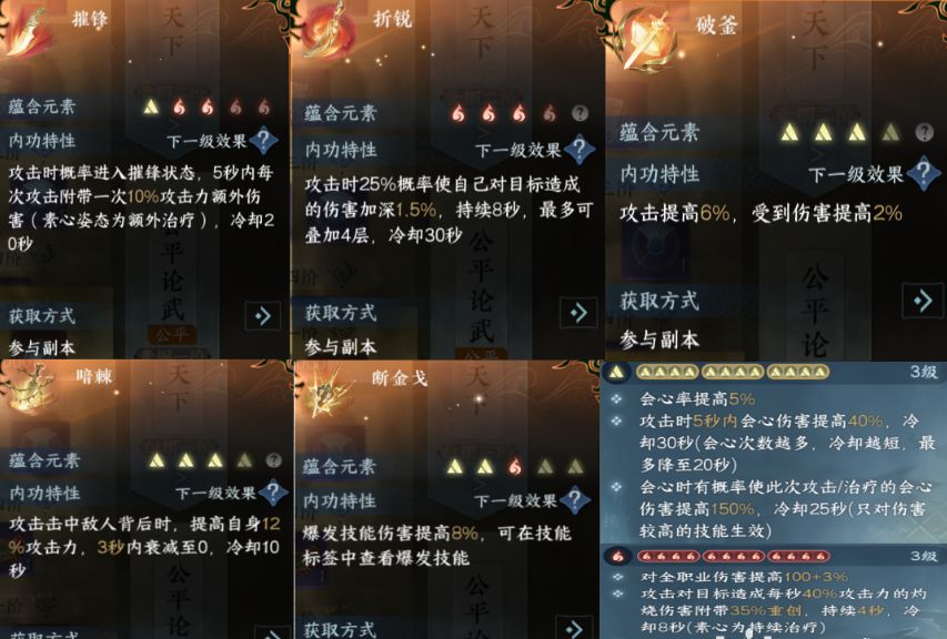 其次PVP这里几木建议是以三火三土的内功周天来凑