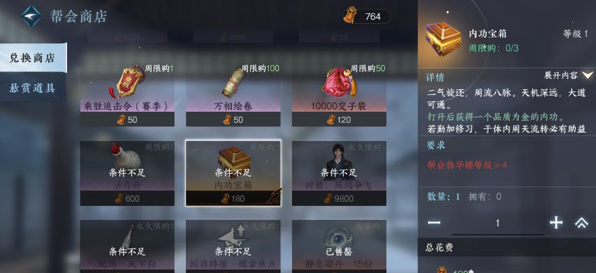 帮会商店:帮会商店4级后每周可购买三个!