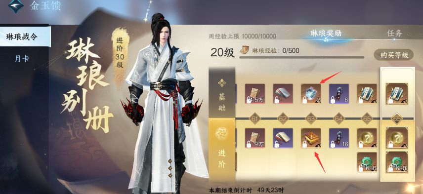 七琳琅战令:8级给2个,18级再给2个,28级给3个,38级给3个,48级给3个,63级给3个!