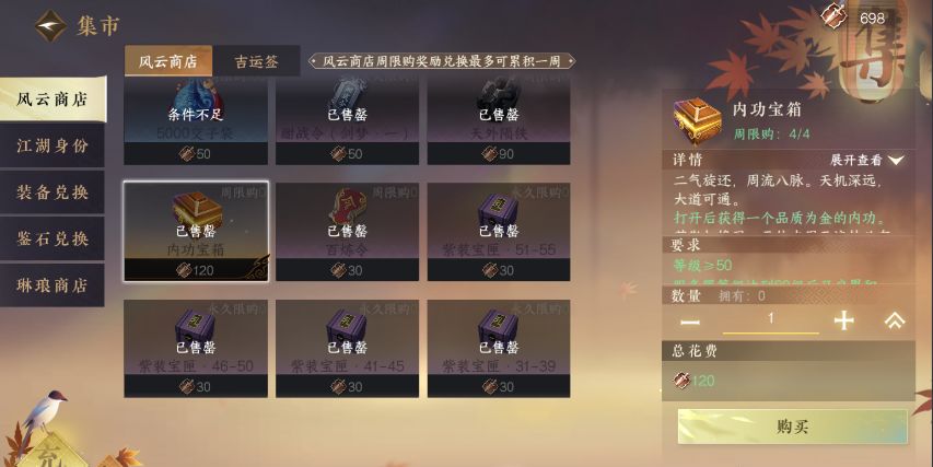 二风云商店:每周可利用风云令购买五个!