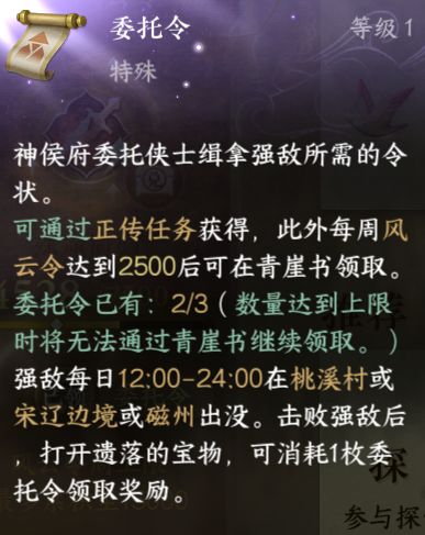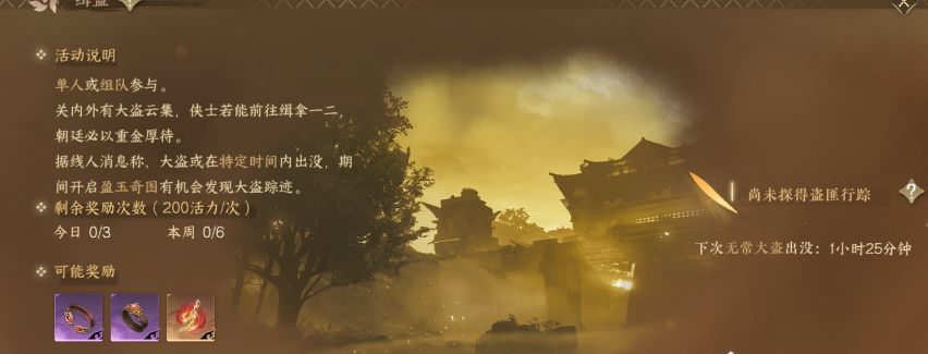 九缉盗任务:每周可进行6次,建议打二阶以上!