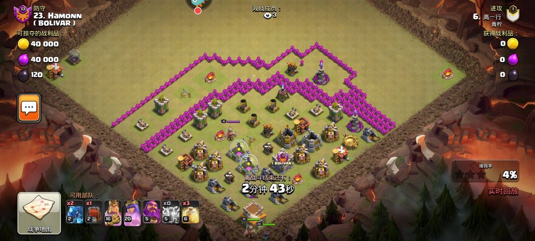 1.无脑莽夫,慌nm直接上去冲冲冲,卧艹这龙怎么喷这么疼,哇,竟然黑3了(눈_눈)。大量萌新部落战因此翻车,引援杀援,这些东西到后面高本打部落战也要注意的。