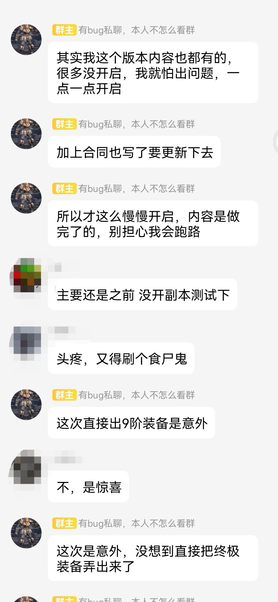 作者紧急修改后发了新版本,还是有一些玩家用bug版本的在玩游戏,自己玩就算了,还到处发图炫耀,搞乱群里交流,逼得群主发公告![[嗒啦啦4_捂脸]](https://img-tc.tapimg.com/market/images/9ee8426de6eb6863c01e62c14ca8eef7.gif)