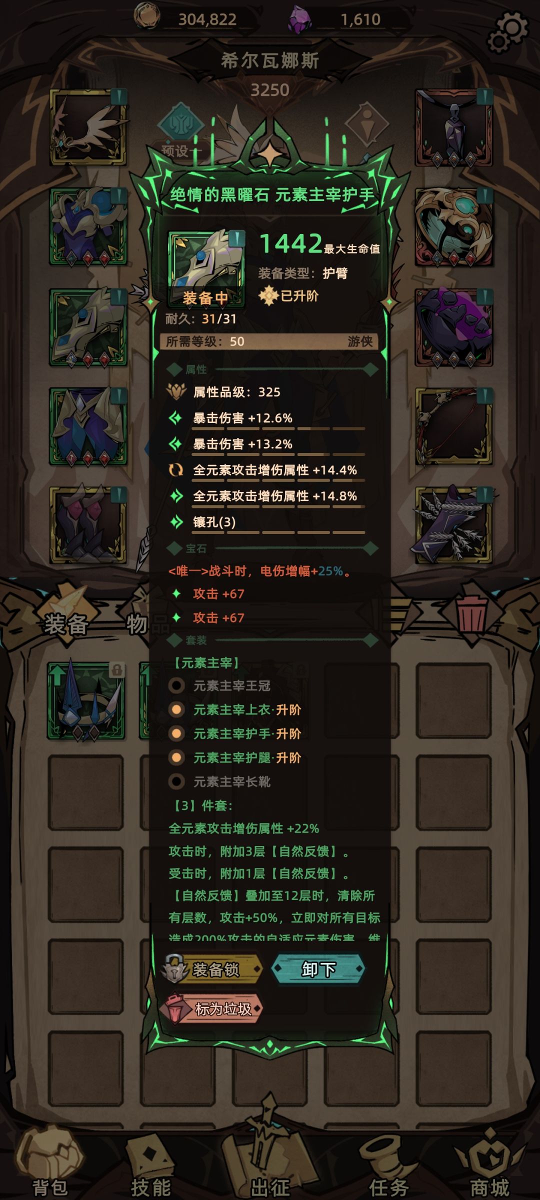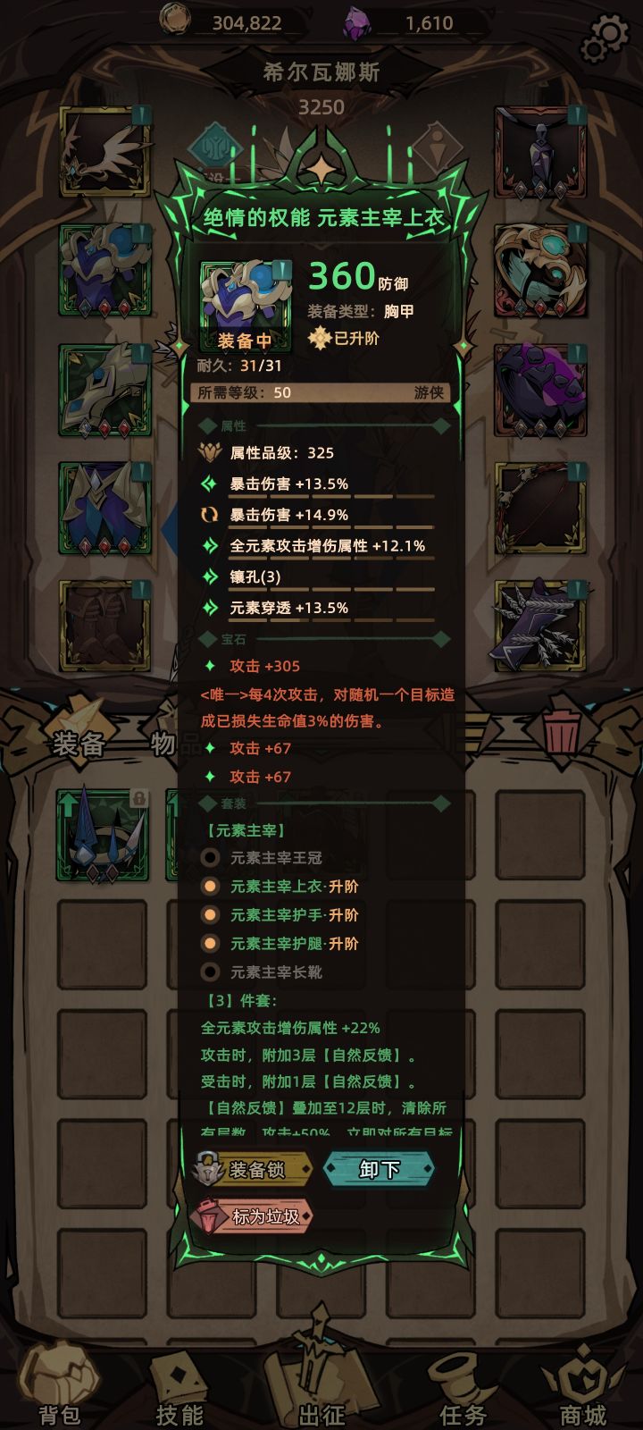 建议二主以上 元素套的特性加上猎龙 会直接在每波开始就触发无限统治 可以全程无限统治buff 主属性>爆伤>元素伤
