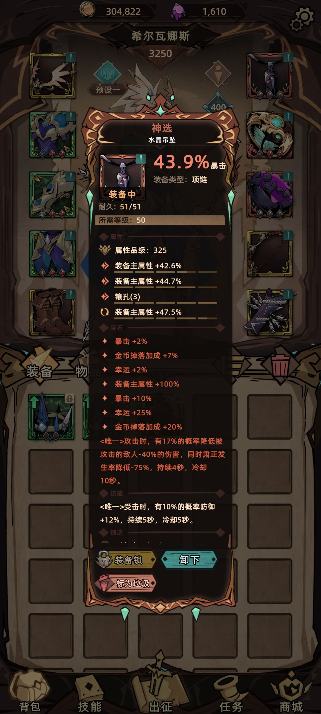 新神器的强力毋庸置疑 30%的爆伤收益增加可以直接增加150%爆伤以上 20%暴击收益增加也可以减轻项链压力 属性方面依然以主属性>爆伤>元素伤