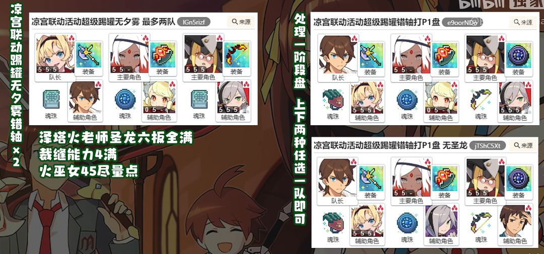 总体而言,本次活动的boss机制并不复杂,而且作为火有利副本主推技伤,对于以便宜好用为主要优点的火技伤来说是相当舒服的,尤其是本次活动boss为龙种族,而作为“龙之盟友”的泳龙骑在本次活动中将会给大家带来一点小小的乘区震撼,接下来先给小伙伴们介绍一下几种踢罐队伍的配置。