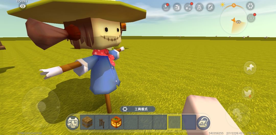 稻草人大家知道怎么做吗?一个草垛,左右下方各摆上一个木头栅栏,上方再放一个南瓜灯,就可以形成稻草人。
