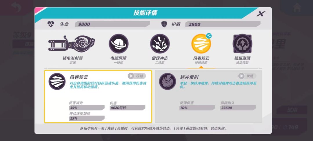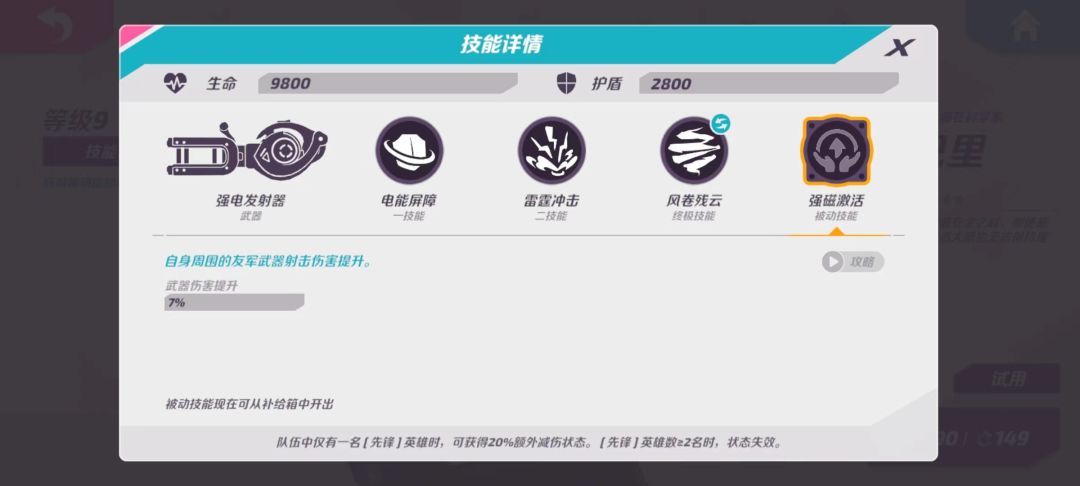 解析:全队增益buff,光环范围较小,可有可无的一个技能(相对于其它英雄被动提升并不大)。