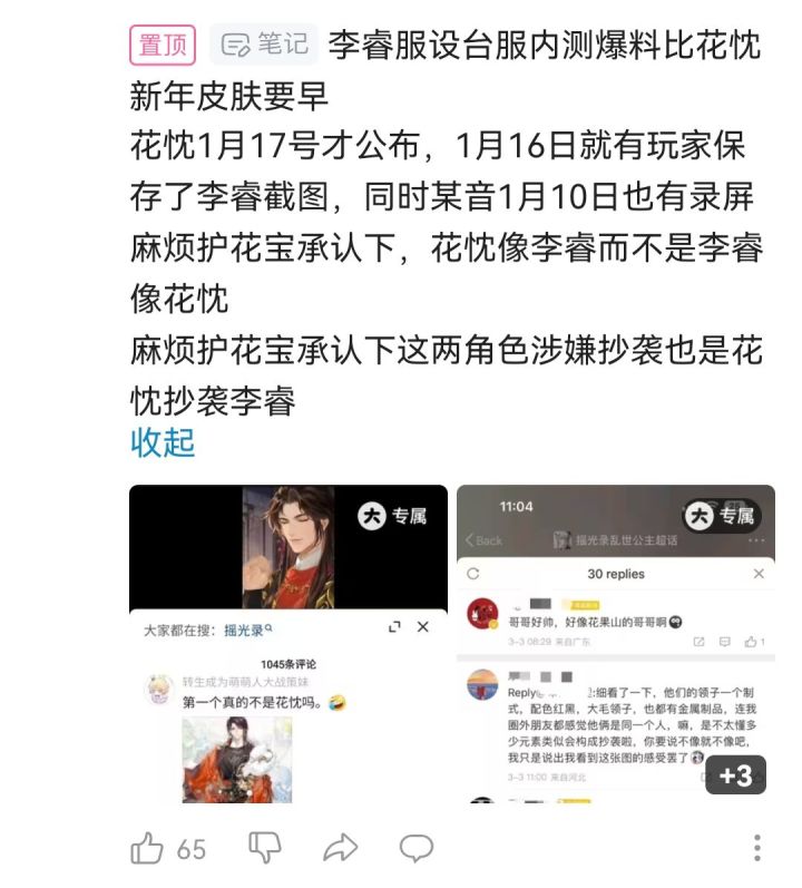 补一张我早期吐槽花的评论,再补一张摇光录最开始爆料的评论截图,时间自己去看,摇光录出来的很早,别搁那花就是万物起源了。