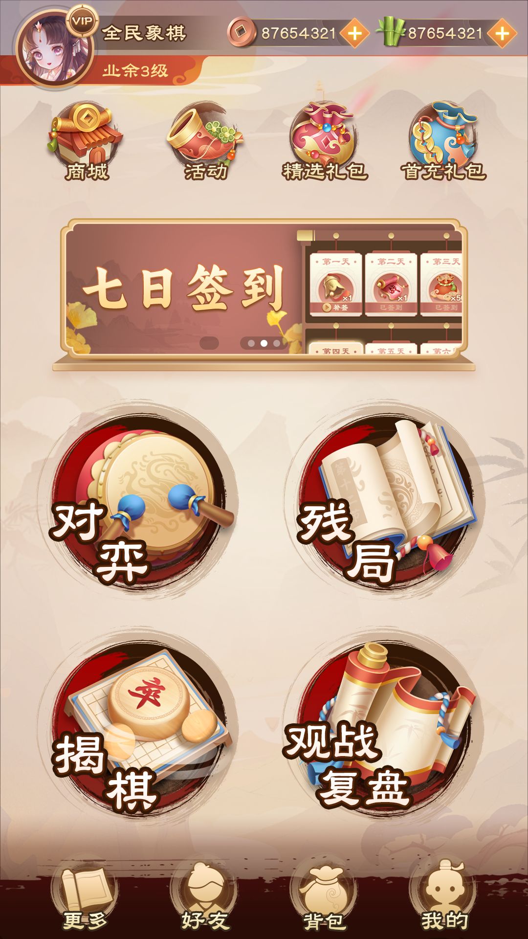 各位进入游戏后就可以发现,大厅的排布、下棋的速度、对弈界面的样式等都将会恢复到大家更加熟悉的老版本形式。同时,我们又在老版本的基础上进行了进一步的优化,增加了七日签到、在线奖励、幸运转盘等模块的轮播图,帮助大家更加便捷地参与活动,具体更新内容如下: