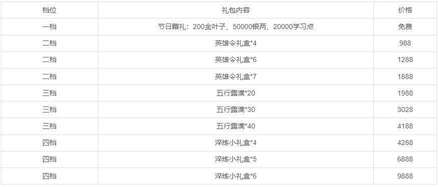 活动一:活动期间将限时上架节日礼包,礼包内容如下: