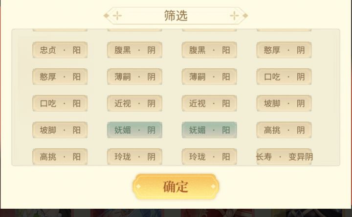〈1〉如果有,比如说有一个妩媚阳的,就去入赘里面筛选一个单个基因妩媚阴指婚给他(结缘过的抓小黑屋重新指,没有就去月老买),反之同理;但如果你有一个已经激活的妩媚娃,只需给他配一个妩媚阳或者妩媚阳即可。