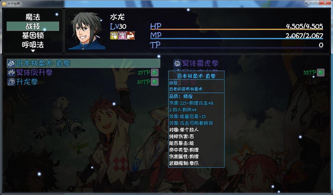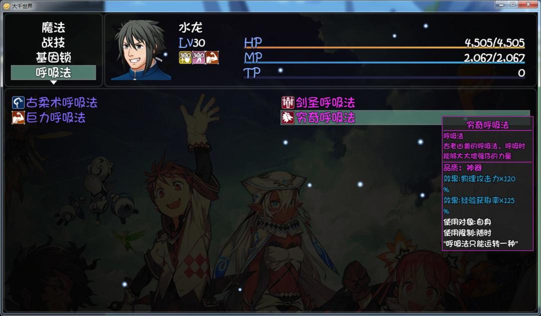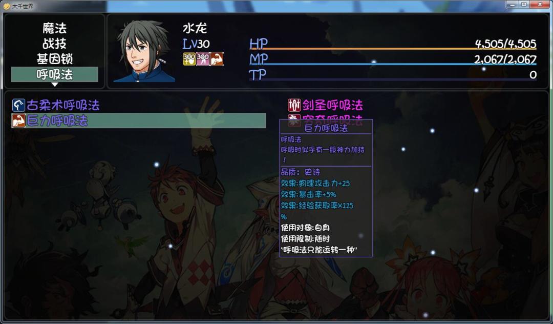 最后说一下因为没加门派,也没有世界币不好让瘠薄偷东西,呼吸法和群体回血咋整呢,也很简单,前面的时候刷柔拳套的时候,猛男哥布林会有古柔术呼吸法