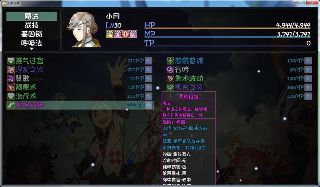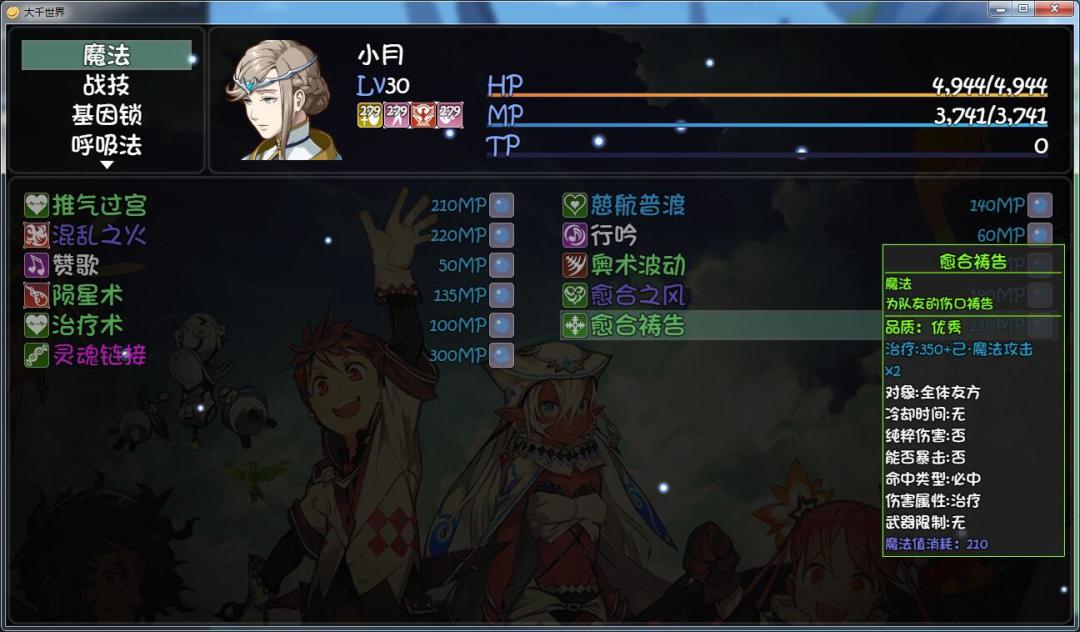 这些呼吸法基本就是物理系最好用的了,然后回血的话直接在王都冒险歇会买搭配上回血装备也能奶四千+,过个深渊是没问题的,然后过渡到灵魂链接就好了