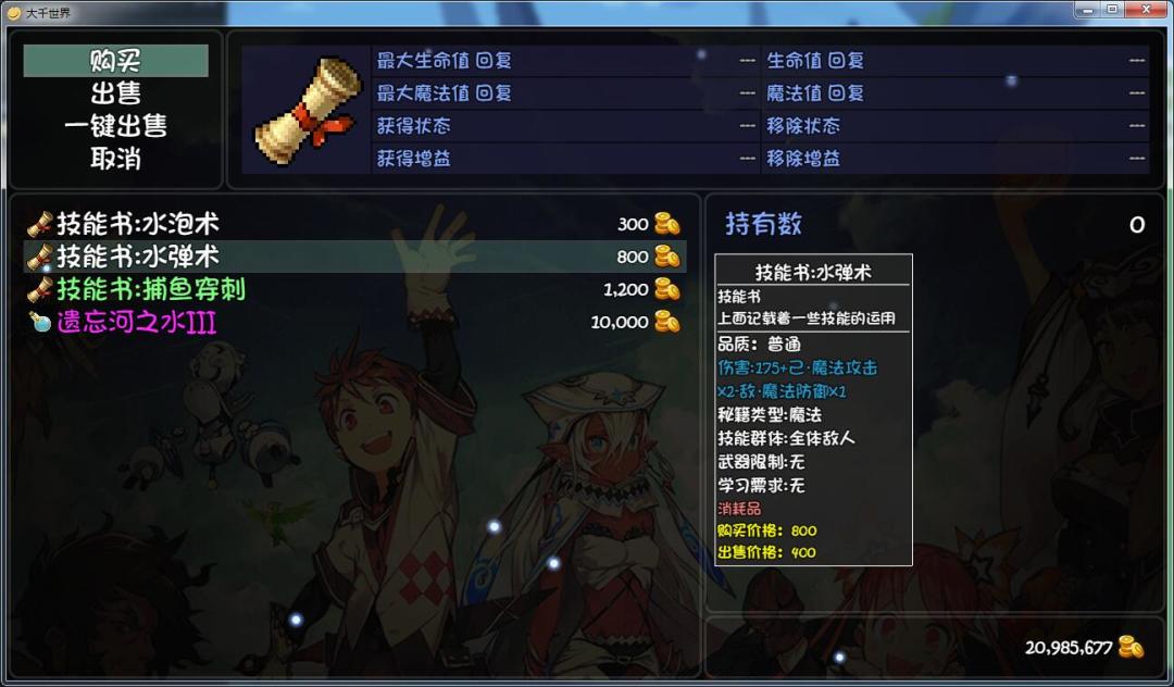 忘了说了开局是肯定要领礼包码的,礼包码里面有💰,这个钱呢虽然不多但是前期很重要,出海有了小船后先去买2个奥利给再去到临海镇,先把老八收了,再去镇长房间左上角这个人买4本这个水弹术,买两本三本也行,随便,不过我建议买四本,因为也不贵,有了就直接去山林镇接任务,主要是接一些加声望的任务,艾坤,小美,这两个一定要接,然后就直接去到暗夜深林,这个时候队伍是小明,小美,老八,那么直接吃个奥利给,在这里的时候,直接往前走,先别上去触发小美离队剧情,因为三个人多次机会逃跑