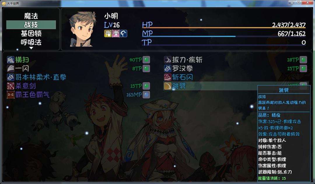 因为是不加入门派,那么技能就显得很重要,水龙爆山都可以用柔术三件套+柔术冲击,基本上14级的时候三拳下来就可以打个三千左右,很猛的,而且回复tp,打野外BOSS的时候啊就可以用tp技能了,而且这套也可以用好久的,不会轻易的过时