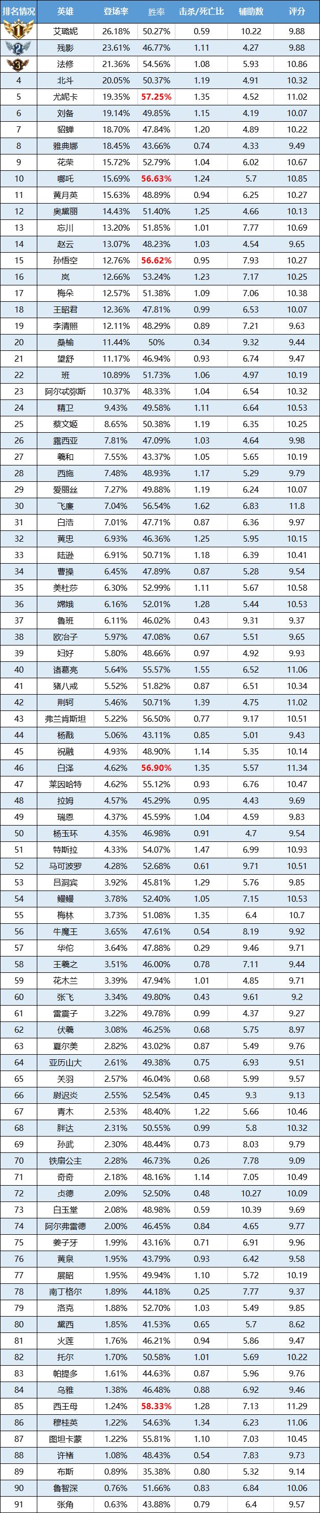 一周英雄榜单 | 西王母荣登‘‘胜率’’女皇,弗兰肯斯坦ban率火箭上升