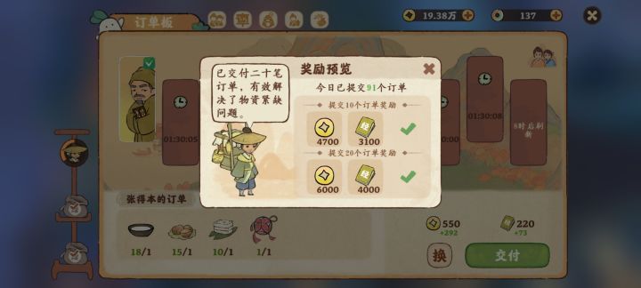 这方面获取量较为固定,获取量为n乘5 n为订单完成数 另外特殊订单是每天1-5单(和总村民好感度等级有关),1单是15 建议每天最多做100单,超过会有debuff,获取量为550每天 。(特殊订单也包含在100单以内)