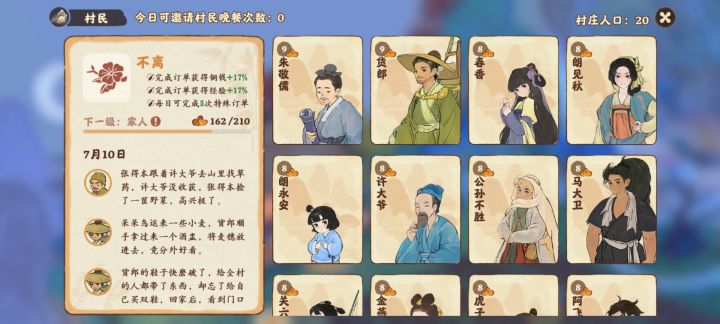 以上两种方式都是较为平均的提升全体村名好感度,下面介绍的这种方式可以针对性的提升某个村名的好感度。