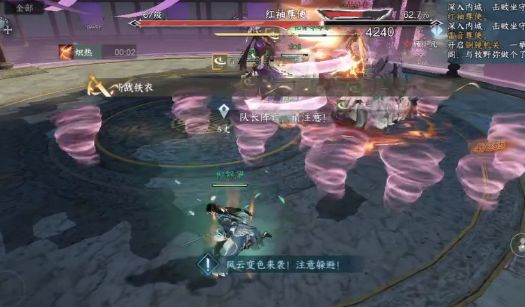 BOSS技能【流风回雪】:红袖对周围释放水属性的攻击,大家跑远一点就可躲避