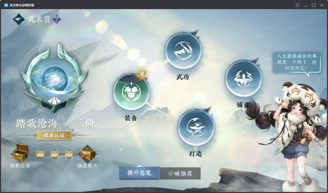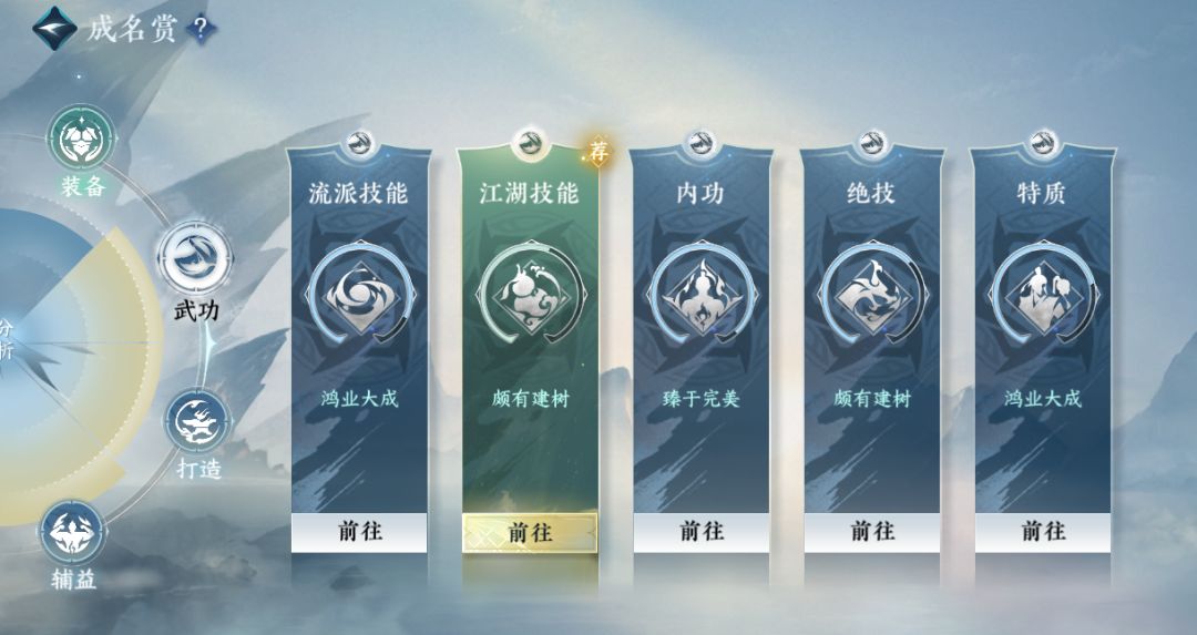 装备/武功/打造/辅益这四大项构成!