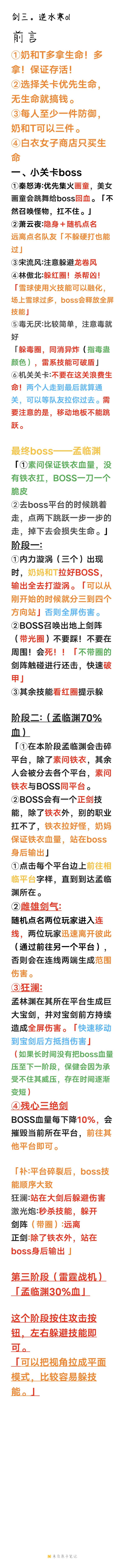自己小队打,图方便总结的,网上剑三攻略大多不完整,勉强总结出这些,如有错误或者缺漏欢迎指正。
