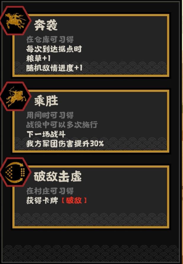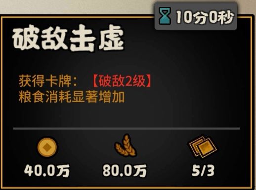 初始效果:军事建筑达到3级,战斗力+3,他国好感-6
