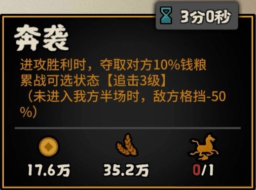 但是我觉得,这个政策真正强的是累战效果的降50%格挡,相反,掠夺钱粮只能说是一个添头。(毕竟玩霍去病应该没啥人奔着抢钱粮去的吧~如果是,那建议老老实实带妇好诶。)