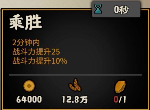 满级效果:军事建筑达到3级,战斗力+15,他国好感-30