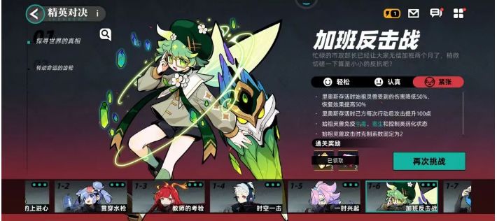 精英对决1-8可以说是这里面最难的一关了,这里需要带一个替补来承受敌法角色的伤害,阵容的话推荐雷伊+布布花+哈莫雷特,BOSS的增加BUFF一定要用雷伊的一技能消除,不然的话承受不住伤害的。