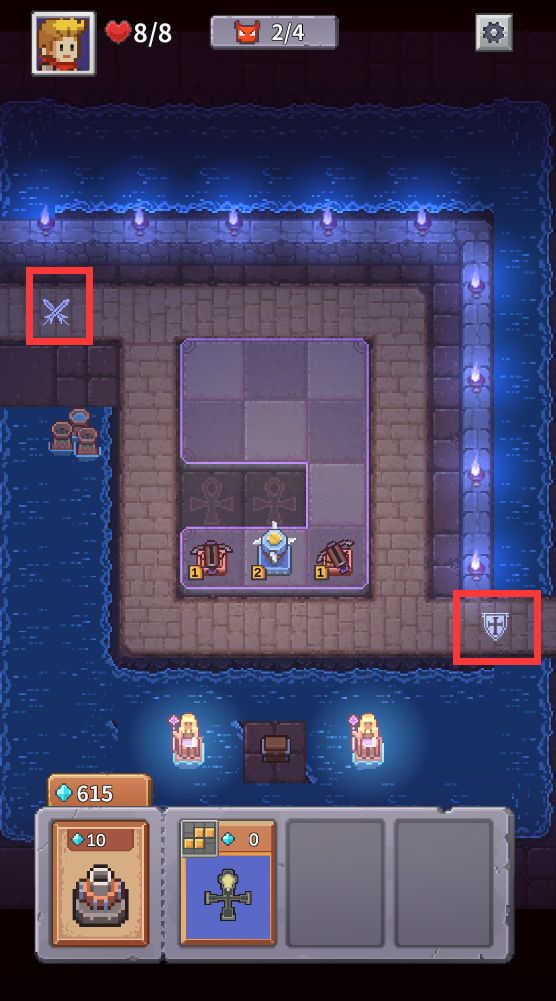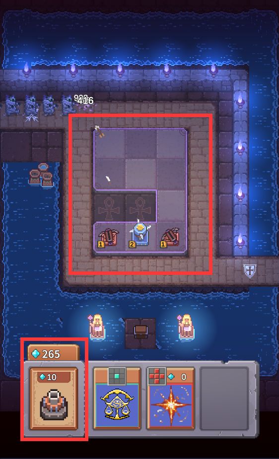 战斗开始后,点击左下角卡片,塔将随机建造在地格上。图标表示下一个塔型。