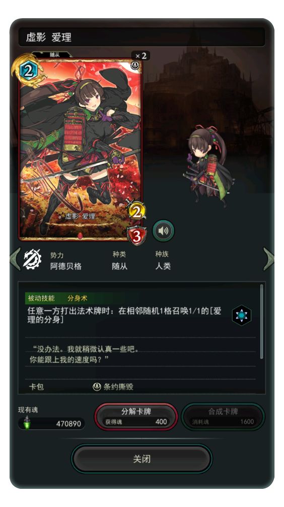 本期给各位小伙伴们介绍的卡牌是虚影爱理