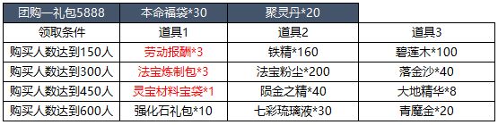 【活动简介】活动期间内,道友们可购买活动界面的团购商品。当购买团购商品的人数达到一定数量时,购买过该商品的道友们可以额外领取相应奖励。
