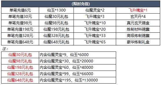 4、2000充值豪礼:活动期间内如不需要道具3:可联系客服兑换《仙魔灵宝*100》、灰太狼、哮天犬、猩红魔蛛、化龙诀、兽神诀、鲲鹏、鸾鸟、驳、狡、玉兔、血神诀、上古丹书、太阴鬼典、五雷天书、万毒混元、赵千颖、循环石*40、八孔双异能胚子其中1个。