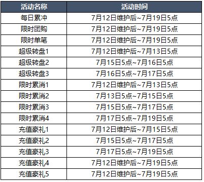 【活动时间】7月12日维护后~7月15日5点