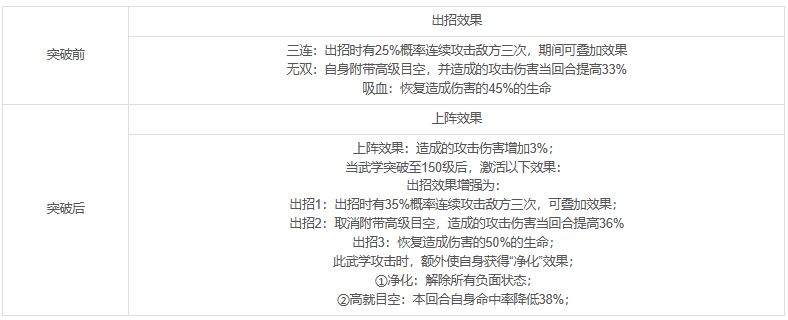 组合上阵效果:免疫封脉,无畏触发概率提高10%,持续至战斗结束
