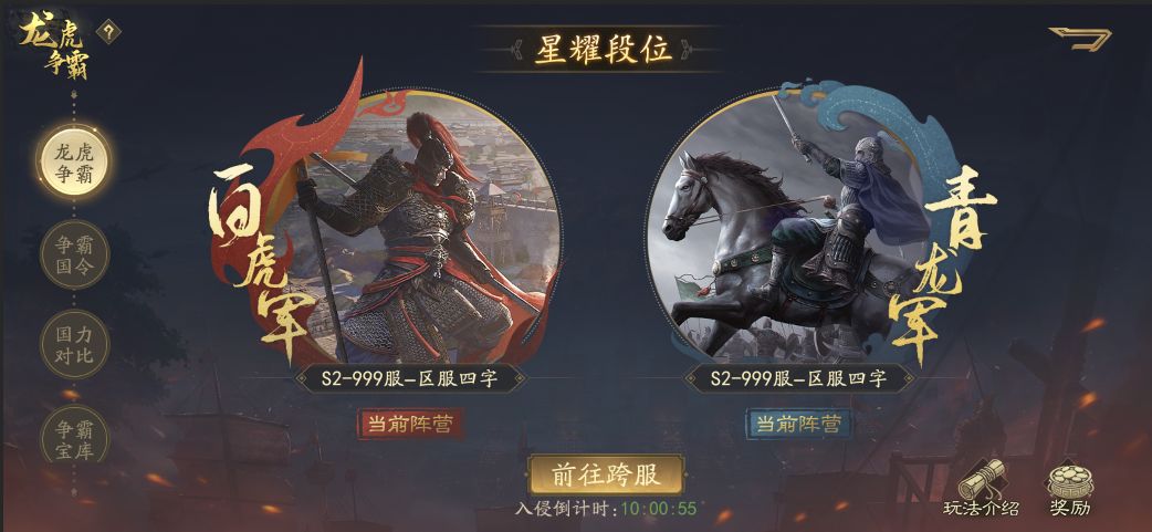龙虎争霸是以个人为单位的匹配跨服赛事玩法,需要主公报名对应段位赛事,并提前选择参赛英雄。